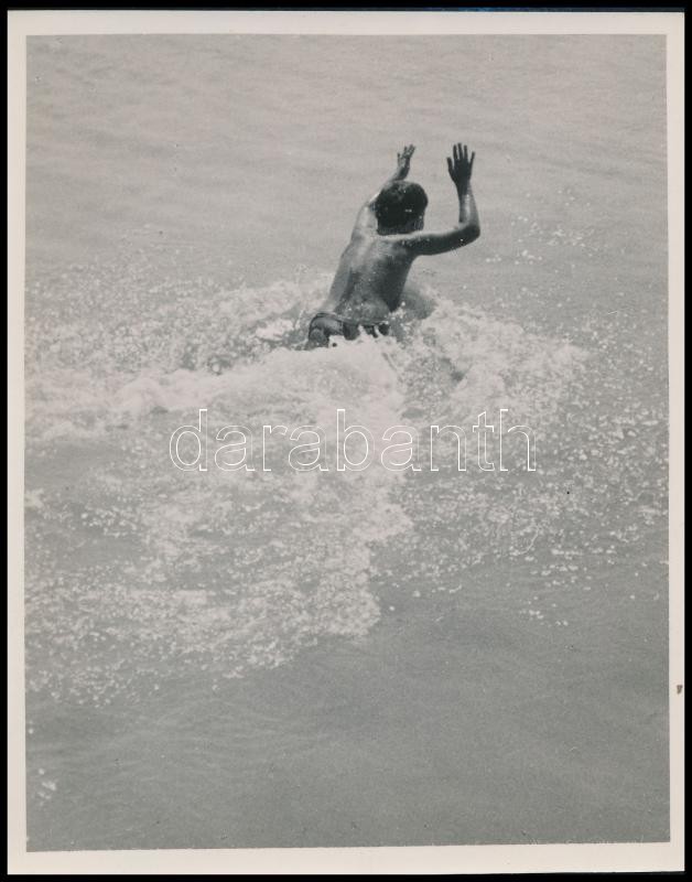 Leírás: cca 1936 Kinszki Imre (1901-1945) budapesti fotóművész pecséttel jelzett vintage alkotása (fürdőzés), 15x11,5 cm