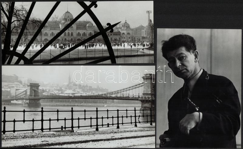 cca 1950 Réti Pál (1918-1989) budapesti fotóművész hagyatékából 7 db vintage fotó, az egyik pecséttel jelzett + hozzáadva egy portrét a művészről, 13x18 cm és 24x18 cm között