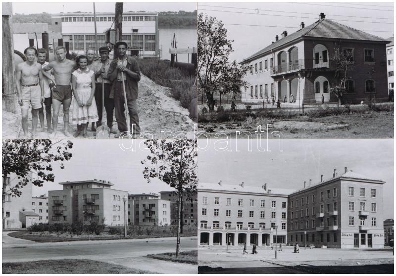 cca 1952 Sztálinváros épül, szépül, Rózsa György (?-?) budapesti fotóriporter hagyatékából 41 db vintage negatív + az ezekről készült mai nagyítások + 2 db Sztálinváros feliratú képeslap, 24x36 mm és 9x13 cm között