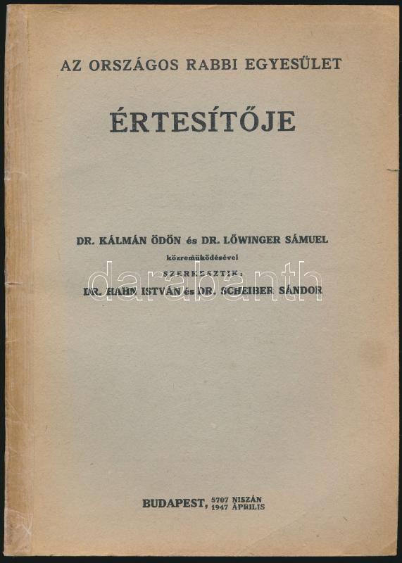 1947 Az Országos Rabbi Egyesület értesítője. Szerk.: Hahn István - Sch... https://www.darabanth.com/hu/326-Gyorsarveres/326.0/Festmeny-mutargy-papirregiseg-egyeb/Judaika~500025/1947-Az-Orszagos-Rabbi-Egyesulet-ertesitoje-Szerk-Hahn-Istvan--Scheiber-Sandor-Papirko~II1748004