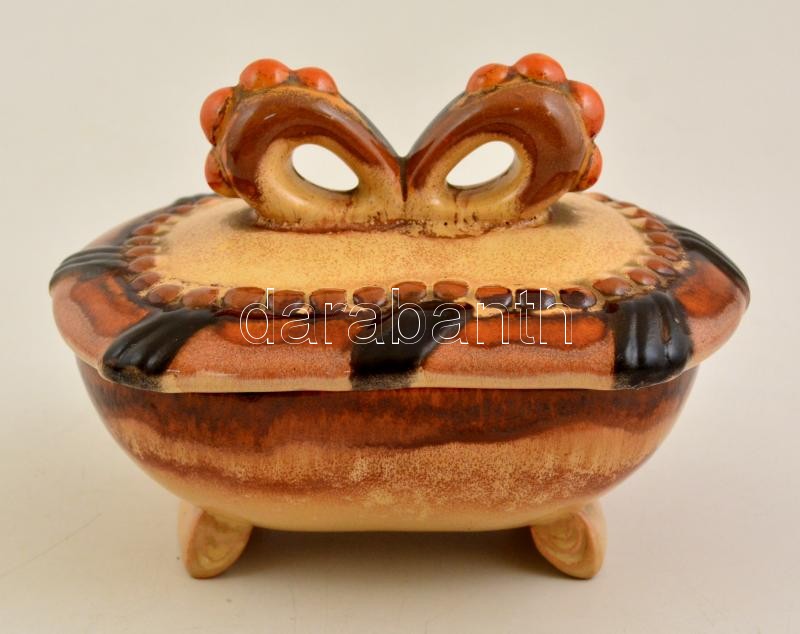 Leírás: Dobozka, mázas kerámia, jelzés nélkül, hibátlan, 20×14 cm