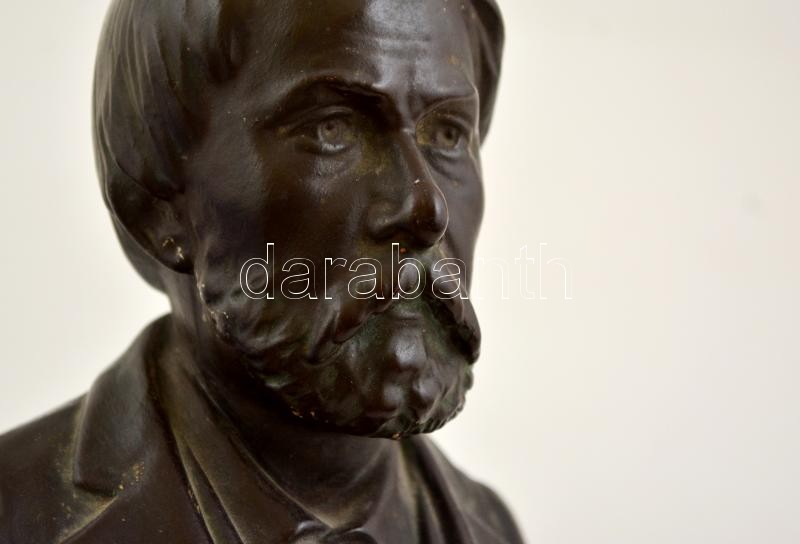 Leírás: Jelzett Arany János mellszobor, festett kerámia, kopott, m: 20 cm
