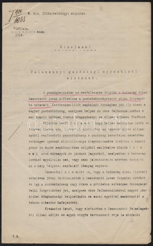1914 Nyírbátor, Mozgósítás miatt vásárolt lovak kifizetésével kapcsola... https://www.darabanth.com/hu/326-Gyorsarveres/326.0/Festmeny-mutargy-papirregiseg-egyeb/Militaria~500028/1914-Nyirbator-Mozgositas-miatt-vasarolt-lovak-kifizetesevel-kapcsolatos-irat~II1813463