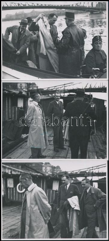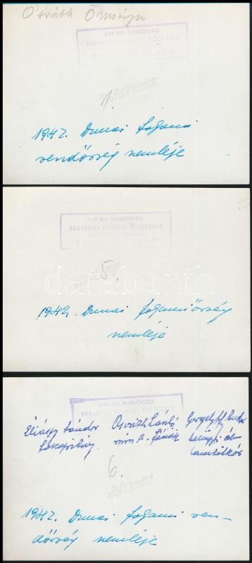 Leírás: 1942 A Dunai Folyami Rendőrség szemléje. 3 db feliratozott és pecsételt belügyminisztériumi fotó 9x12 cm