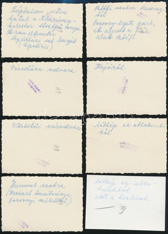 Leírás: cca 1930-1960 Pozsonyi utcarészletek, 11 db fotó, hátuljukon feliratozva, 6×9 cm