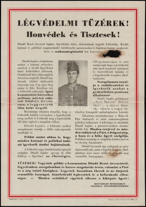 cca 1950 Légvédelmi tüzérek!, katonai propaganda plakát, kis égésnyomm... https://www.darabanth.com/hu/326-Gyorsarveres/326.0/Festmeny-mutargy-papirregiseg-egyeb/Militaria~500028/cca-1950-Legvedelmi-tuzerek-katonai-propaganda-plakat-kis-egesnyommal-42C39729-5-cm~II1817449