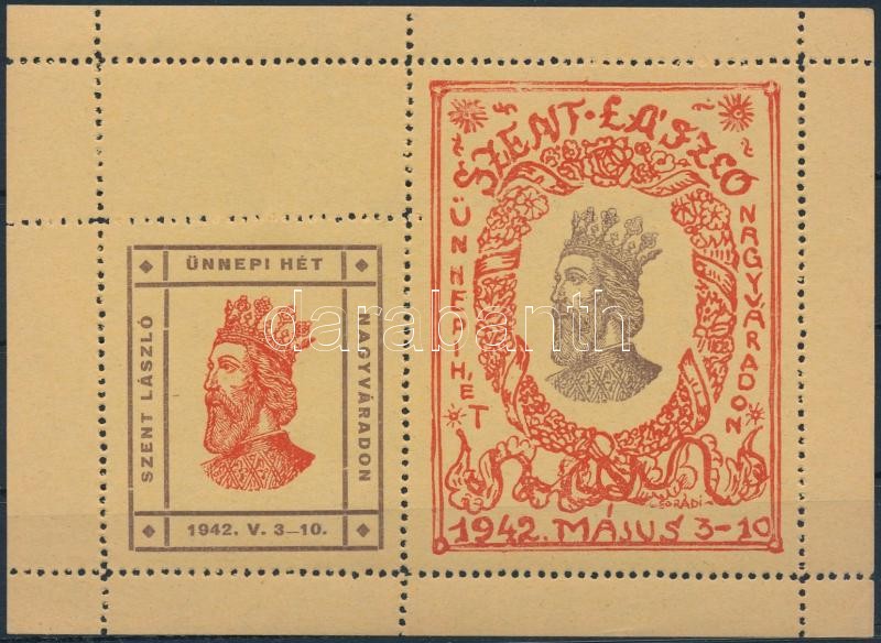 1942 Szent László ünnepi hét Nagyváradon levélzáró sárga papíron https://www.darabanth.com/hu/326-Gyorsarveres/326.0/Festmeny-mutargy-papirregiseg-egyeb/Parafilatelia~500015/1942-Szent-Laszlo-unnepi-het-Nagyvaradon-levelzaro-sarga-papiron~II1813634