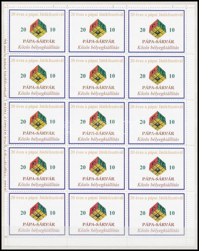 Leírás: 2010 Pápa-Sárvár közös bélyegkiállítás levélzáró teljes ív