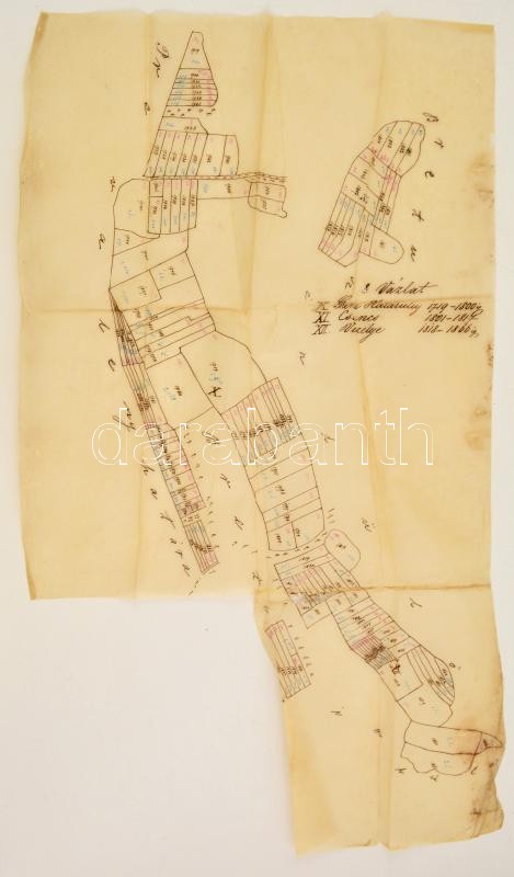 Leírás: XIX. sz. Csencs és Veszelye települések dűlőinek kézzel rajzolt térképe 35x50 cm