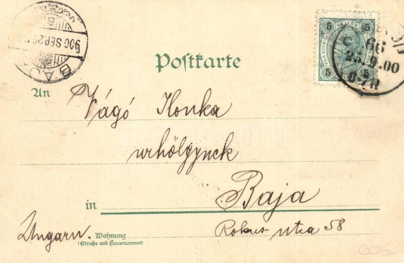 Leírás: 1900 Vienna, Wien; Am Hof / market square with monument. Kunstanstalt J. Miesler litho (EK)