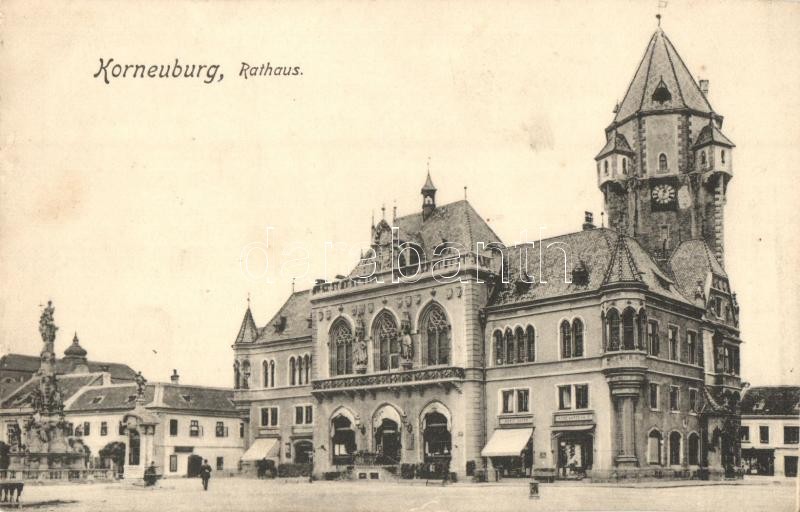 Korneuburg, Rathaus. Verlag Julius Kühkopf / town hall, Trinity statue... https://www.darabanth.com/hu/326-Gyorsarveres/326.0/Kepeslapok/Ausztria~2500015/Korneuburg-Rathaus-Verlag-Julius-Kuhkopf-town-hall-Trinity-statue-Moriz-Sofers-shop~II1813449