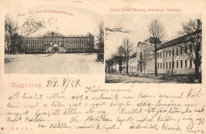 Leírás: 1904 Nagyvárad, Oradea; M. kir. honvéd hadapród iskola, József Ágost főherceg honvéd gyalogsági laktanya / military barracks