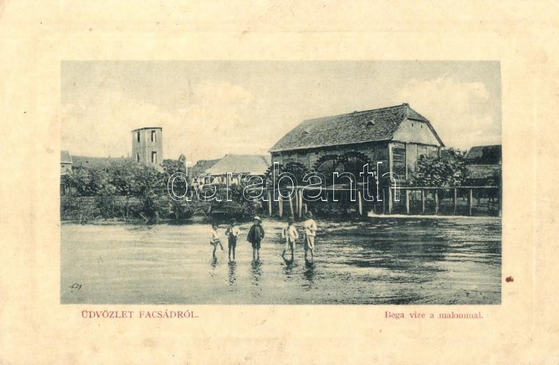 Leírás: 1913 Facset, Facsád, Faget; Bega vize a malommal. W.L. Bp. 1421. / River Bega with mill