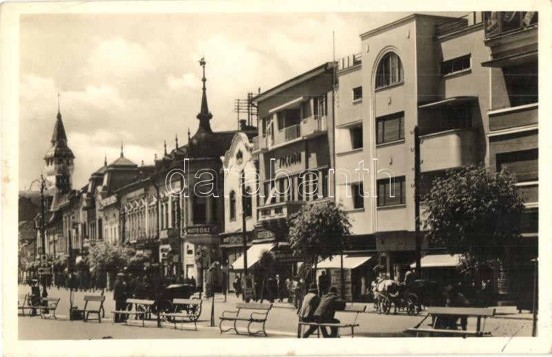 Leírás: Marosvásárhely, Targu Mures; Széchenyi tér, Mateosz, Vámos, Kertész üzlete / square, shops