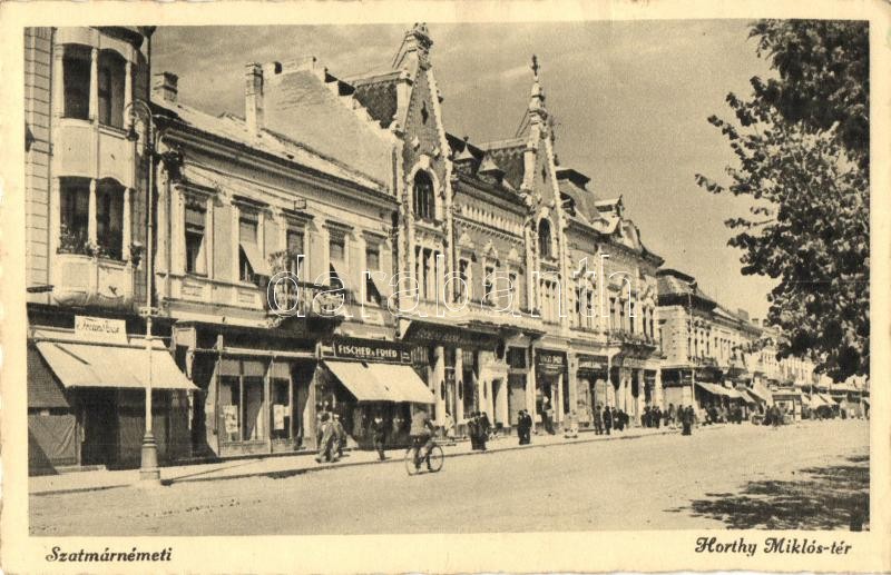 Szatmárnémeti, Satu Mare; Horthy Miklós tér, Fischer és Fried üzlete, ... https://www.darabanth.com/hu/326-Gyorsarveres/326.0/Kepeslapok/Erdely~2500001/Szatmarnemeti-Satu-Mare-Horthy-Miklos-ter-Fischer-es-Fried-uzlete-kerekpar-square-sho~II1814725