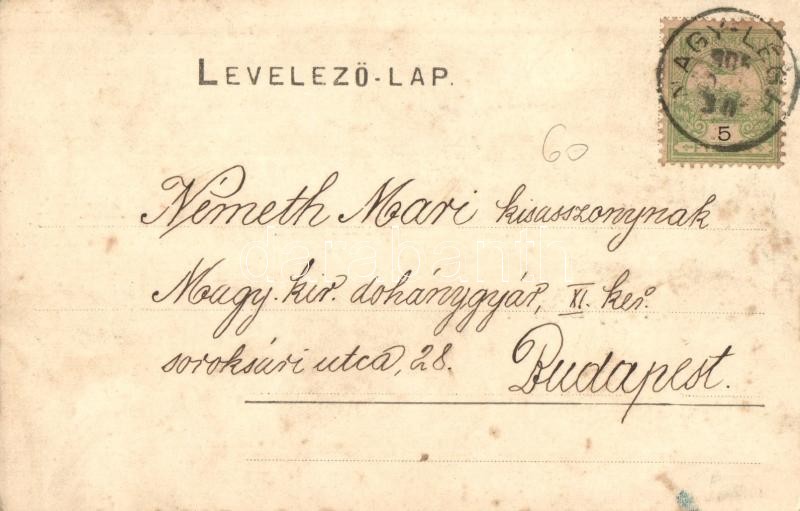 1905 Nagylég, Veľké Lehnice (Lég, Lechnice); Benyovszky kastély, M. k. posta hivatal, Római katolikus iskola és templom. Steegmüller Arthur 179. / castle, post office, Catholic school and church. Art Nouveau, floral (fl)