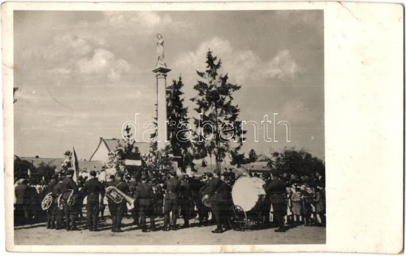 1938 Ipolyság, Sahy; bevonulás, az első tábori mise, katonai zenekar / entry of the Hungarian troops, the first field mass, military music band + 1938 Ipolyság visszatért So. Stpl. (fa)
