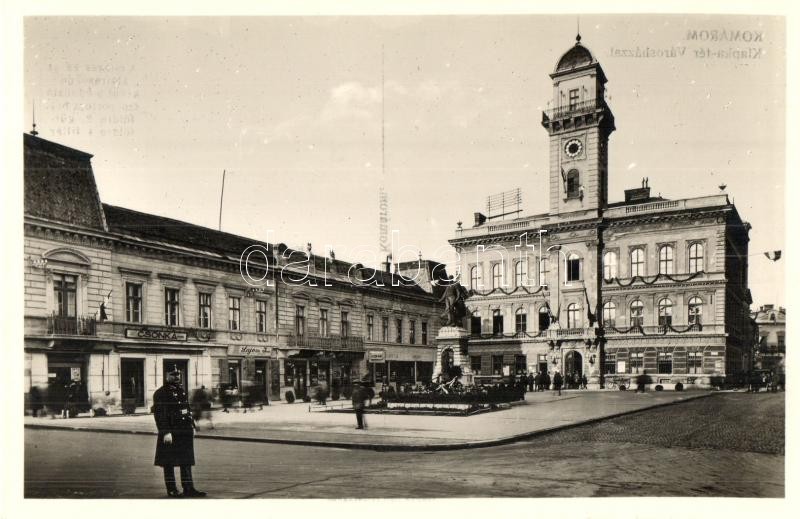 Komárom, Komárnó; Klapka tér, Városház, Csonka Zsigmond, Lajos János, ... https://www.darabanth.com/hu/326-Gyorsarveres/326.0/Kepeslapok/Felvidek~2500007/Komarom-Komarno-Klapka-ter-Varoshaz-Csonka-Zsigmond-Lajos-Janos-Klein-Mor-uzletek-pa~II1814511