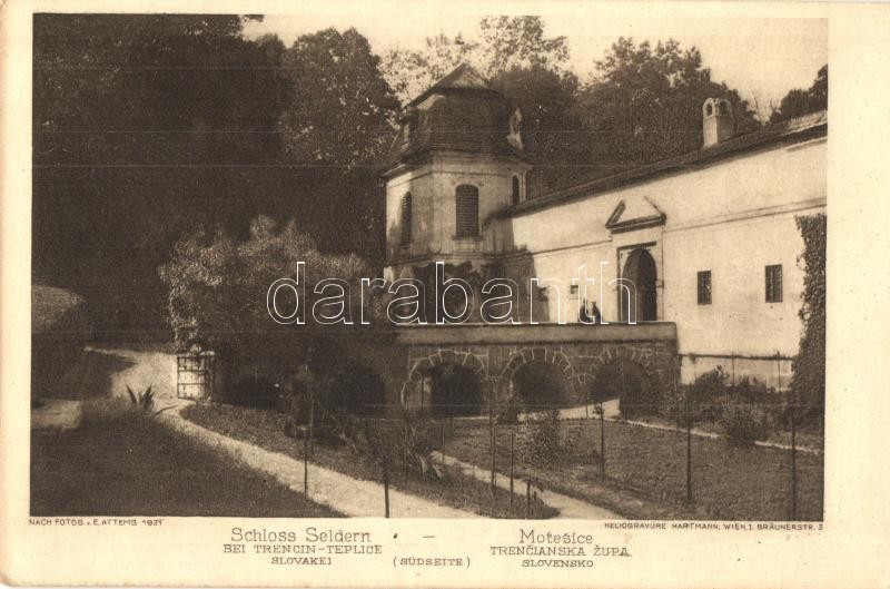 Leírás: Motesic, Motesice (Trencsén mellett / near Trencín); Schloss Seldern / Seldern kastély. E. Attems felvétele után, Hartmann kiadása / castle (EK)
