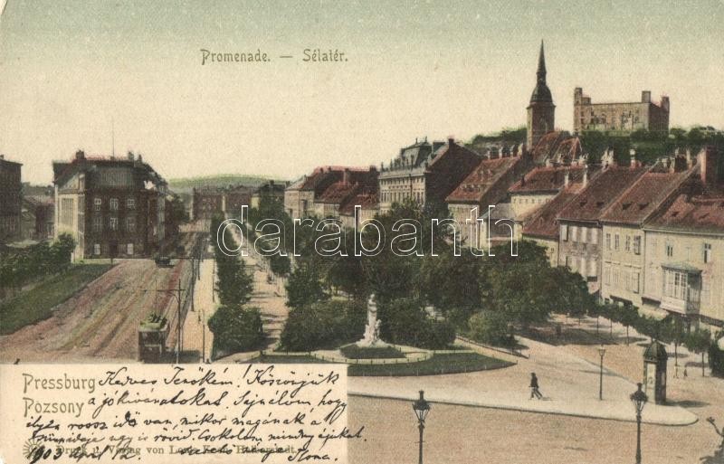 Pozsony, Pressburg, Bratislava; Sétatér, villamos / promenade, tram https://www.darabanth.com/hu/326-Gyorsarveres/326.0/Kepeslapok/Felvidek~2500007/Pozsony-Pressburg-Bratislava-Setater-villamos-promenade-tram~II1816204