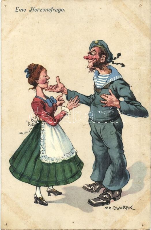 Eine Herzensfrage / K.u.K. Kriegsmarine mariners humour art postcard. ... https://www.darabanth.com/hu/326-Gyorsarveres/326.0/Kepeslapok/Hadihajo~2500069/Eine-Herzensfrage-KuK-Kriegsmarine-mariners-humour-art-postcard-C-Fano-44-191415-s-Ed-Dw~II1815024