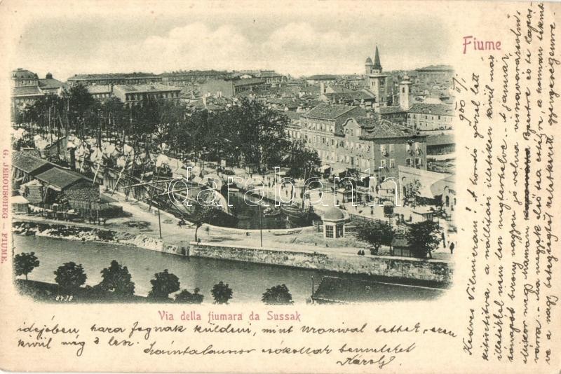 Leírás: Fiume, Rijeka, Susak, Sussak; Via della fiumara da Sussak / street, ships (EK)
