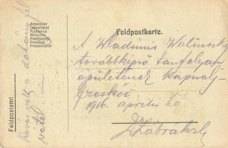 1916 Kevés volt a dohány felvétel. M. H. Dohány jöv. Elt. Osztrák-magyar tábori postai levelezőlap / WWI Austro-Hungarian K.u.K. military field post, Feldpostkarte. s: Gábor Lajos 82-es (EK)