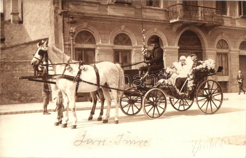Leírás: Katonatiszt esküvője, díszes fogat, Honti Sándor fényképész Szeged felvétele / Hungarian soldier's wedding, coach, photo