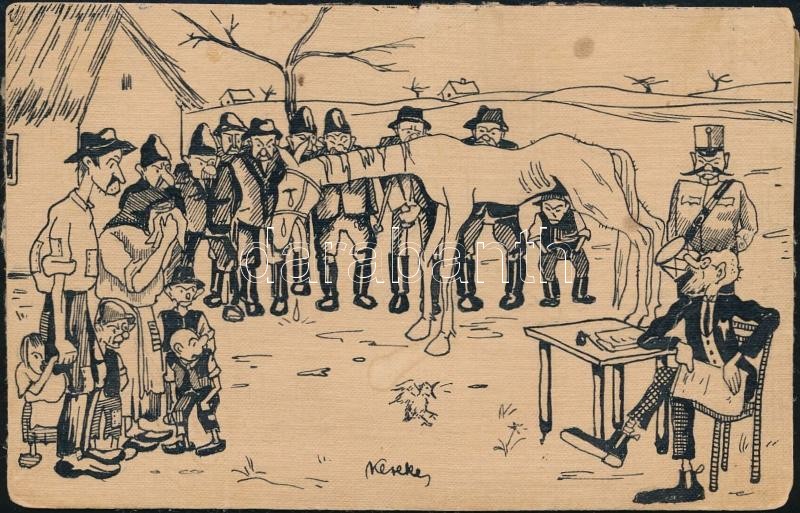 Kézzel rajzolt saját készítésű osztrák-magyar katonai művészlap / WWI Hand-drawn custom-made Austro-Hungarian K.u.K. military art postcard. s: Kerekes (non PC)