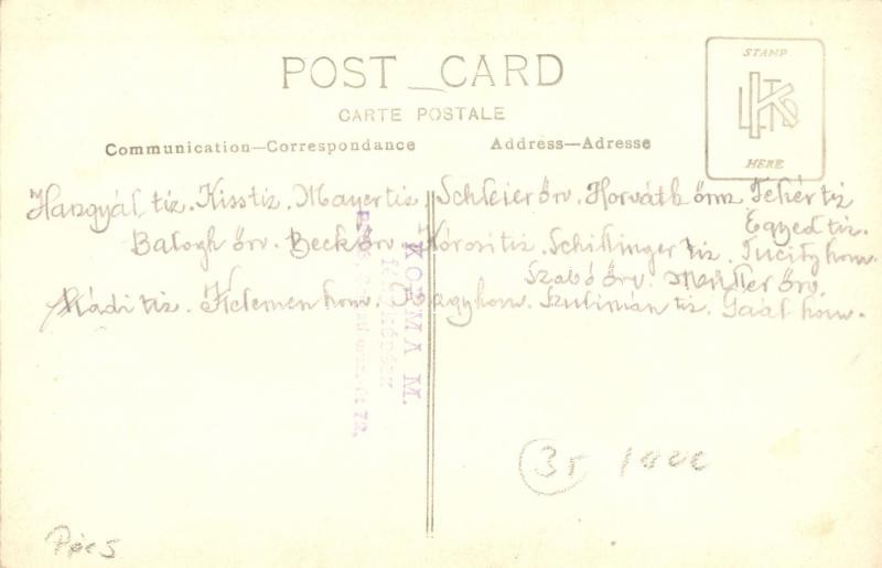 Osztrák-magyar katonák jelmezes csoportképe Pécsett, hátoldalon nevek / WWI Austro-Hungarian K.u.K. military group photo with costumes, names on the backside. Kozma M. photo
