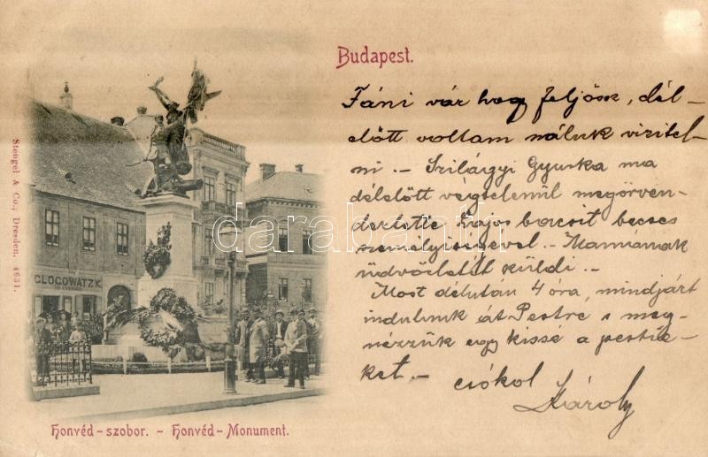 Leírás: 1898 Budapest I. Dísz tér, Honvéd-szobor, üzlet (kis szakadás / small tear)