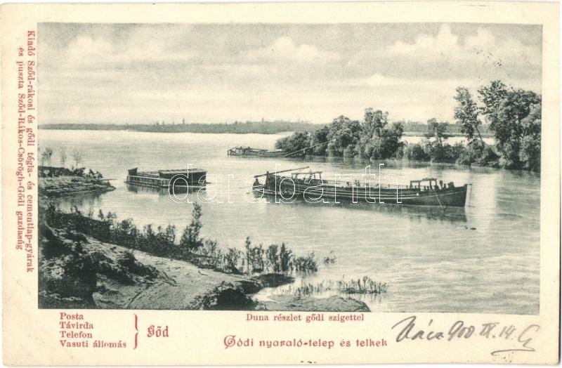 1900 Göd, Duna részlet a gödi szigettel, nyaraló telep és telkek. Kiadó a Sződrákosi és gödi tégla- és cementlap-gyárak és puszta Sződ-Rákos-Csörögh-Gödi gazdaság