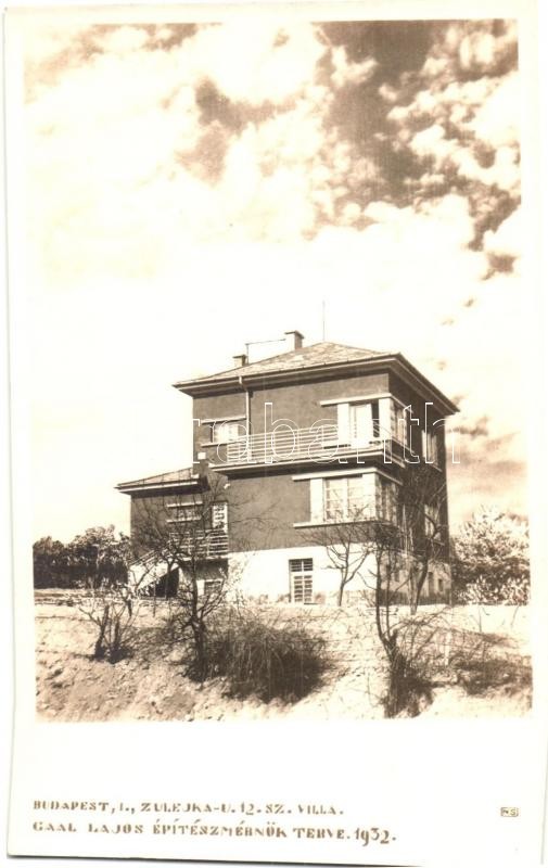 1932 Budapest XII. Zulejka utca 12. szám alatt levő villa. Gaál Lajos ... https://www.darabanth.com/hu/326-Gyorsarveres/326.0/Kepeslapok/Magyarorszag~2500002/1932-Budapest-XII-Zulejka-utca-12-szam-alatt-levo-villa-Gaal-Lajos-epiteszmernok-terve-p~II1813869