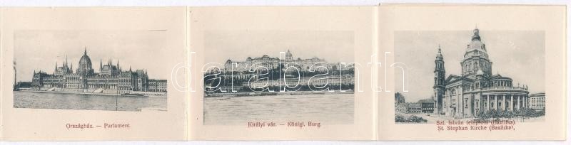 Leírás: Budapest, Erzsébet híd. leporellólap benne: Országház, Múzeum körút, Királyi vár, panoráma, stb.