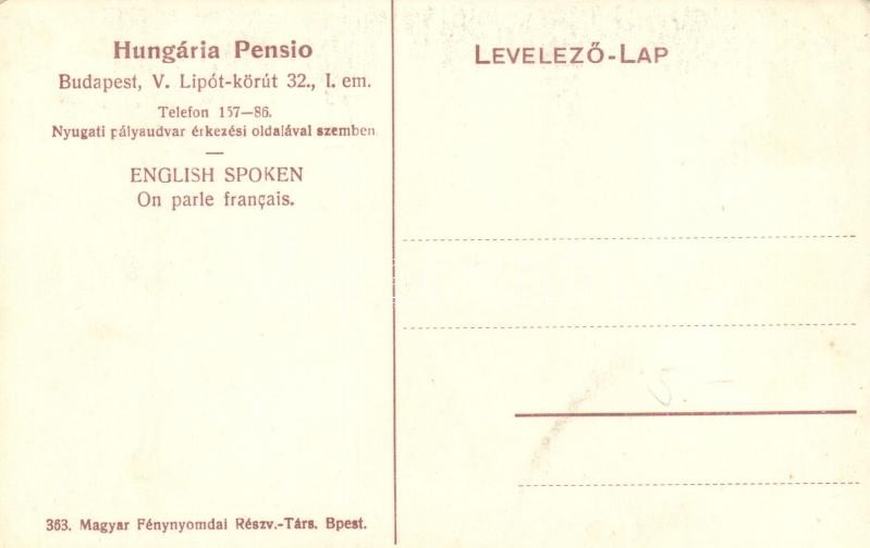 Leírás: Budapest XIII. Hungária Pensio, belső. Lipót körút 32. (ma Szent István körút)
