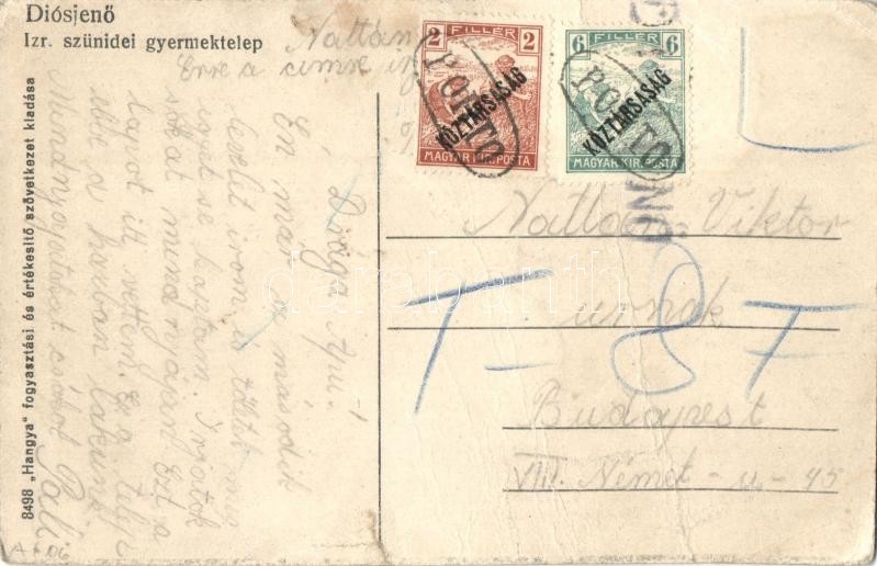 Diósjenő, Izraelita szünidei gyermektelep + Portó (fa) https://www.darabanth.com/hu/326-Gyorsarveres/326.0/Kepeslapok/Magyarorszag~2500002/Diosjeno-Izraelita-szunidei-gyermektelep-plus-Porto-fa~II1812312