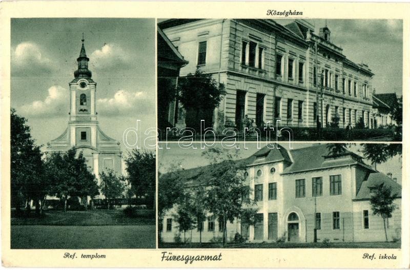 Füzesgyarmat, Községháza, Református templom és iskola (EK) https://www.darabanth.com/hu/326-Gyorsarveres/326.0/Kepeslapok/Magyarorszag~2500002/Fuzesgyarmat-Kozseghaza-Reformatus-templom-es-iskola-EK~II1816851