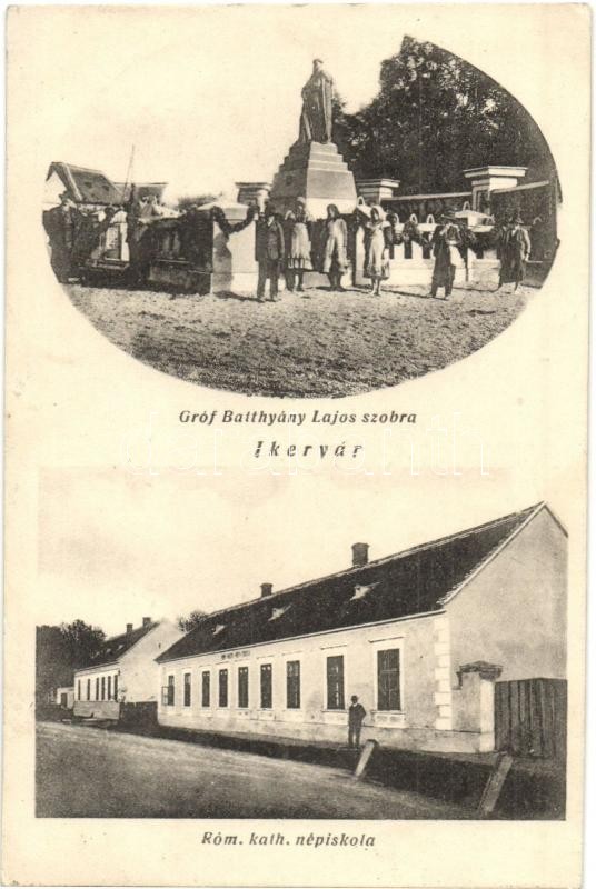 Ikervár, Gróf Batthyány Lajos szobor, Római katolikus népiskola (EK) https://www.darabanth.com/hu/326-Gyorsarveres/326.0/Kepeslapok/Magyarorszag~2500002/Ikervar-Grof-Batthyany-Lajos-szobor-Romai-katolikus-nepiskola-EK~II1816901