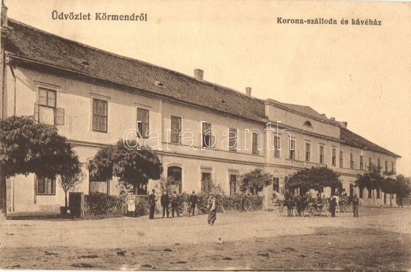 Körmend, Korona szálloda és kávéház, hintók (EK) https://www.darabanth.com/hu/326-Gyorsarveres/326.0/Kepeslapok/Magyarorszag~2500002/Kormend-Korona-szalloda-es-kavehaz-hintok-EK~II1816951