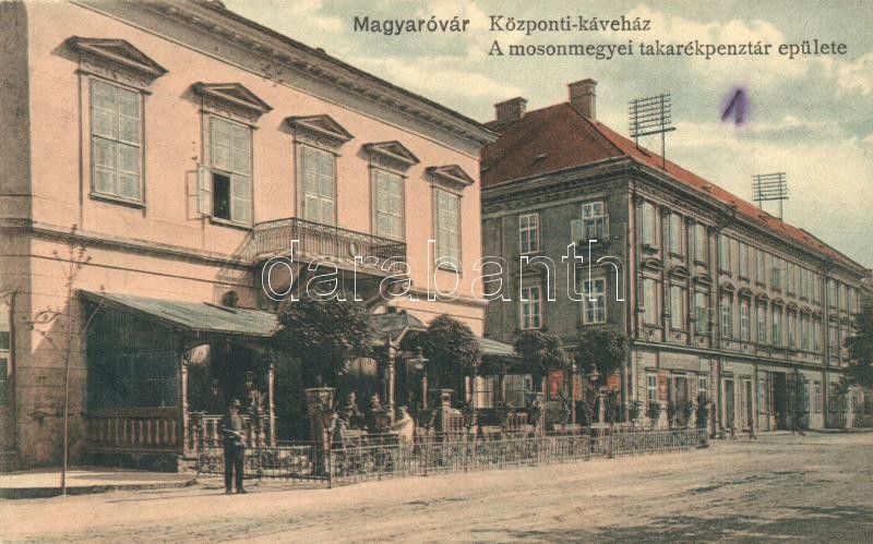 Leírás: Mosomagyaróvár, Magyaróvár; Központi kávéház, Mosonmegyei takarékpénztár épülete (Rb)
