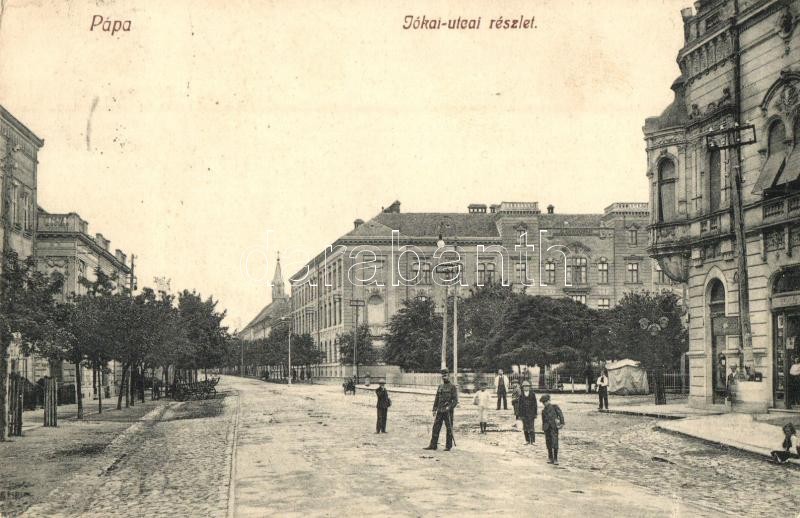 Pápa, Jókai utca, Főiskola. Kis Tivadar kiadása https://www.darabanth.com/hu/326-Gyorsarveres/326.0/Kepeslapok/Magyarorszag~2500002/Papa-Jokai-utca-Foiskola-Kis-Tivadar-kiadasa~II1761000