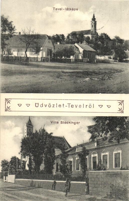 Tevel, látkép, templom, Villa Stockinger. Schemnitz fényképész https://www.darabanth.com/hu/326-Gyorsarveres/326.0/Kepeslapok/Magyarorszag~2500002/Tevel-latkep-templom-Villa-Stockinger-Schemnitz-fenykepesz~II1817441
