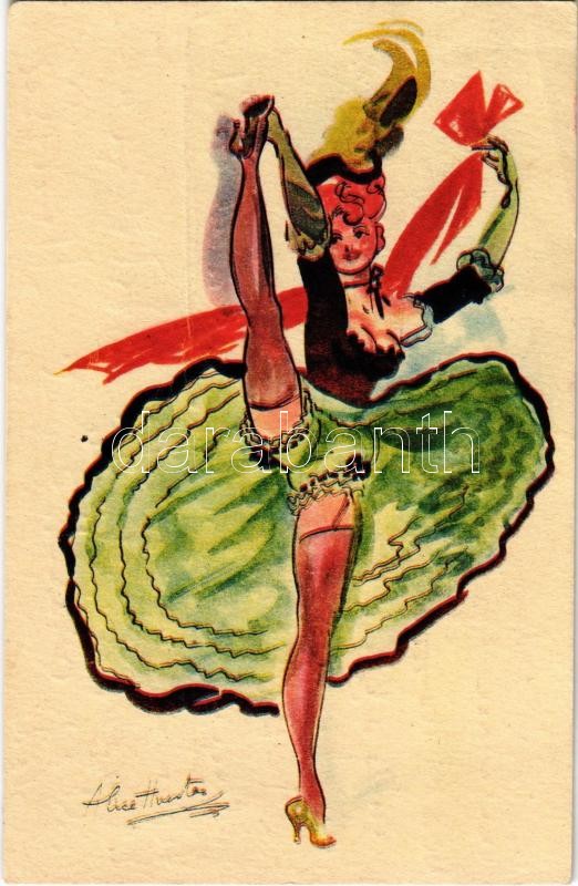 French cancan dancer, hand-coloured art postcard, s: Alice Huertas (EK... https://www.darabanth.com/hu/326-Gyorsarveres/326.0/Kepeslapok/Muveszlapok~2500079/French-cancan-dancer-hand-coloured-art-postcard-s-Alice-Huertas-EK~II1816791