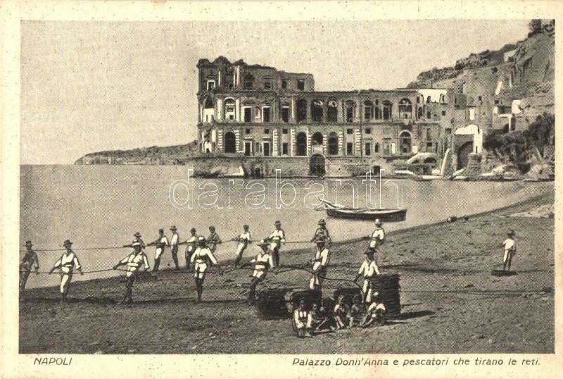 Napoli, Naples; Palazzo Donn'Anna e pescatori che tirano le reti ... https://www.darabanth.com/hu/326-Gyorsarveres/326.0/Kepeslapok/Olaszorszag~2500038/Napoli-Naples-Palazzo-DonnAnna-e-pescatori-che-tirano-le-reti-Villa-DonnAnna-fishermen-pullin~II1813064