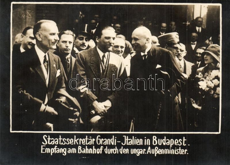 1926 Staatssekretär Grandi in Budapest. Empfang am Bahnhof durch den ungar. Außenminister / Dino Grandi Italian fascist politician arrives at the railway station in Budapest, Bethlen and other Hungarian ministers welcome him. photo (non PC)