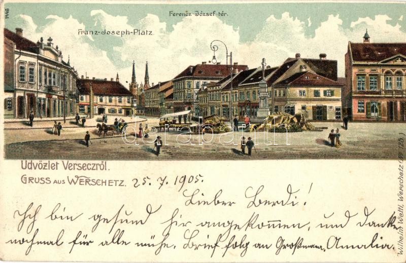 1905 Versec, Werschetz, Vrsac; Ferenc József tér, utcai árusok. Wilhel... https://www.darabanth.com/hu/326-Gyorsarveres/326.0/Kepeslapok/Vajdasag~2500010/1905-Versec-Werschetz-Vrsac-Ferenc-Jozsef-ter-utcai-arusok-Wilhelm-Wettl-No-125-square-w~II1813211