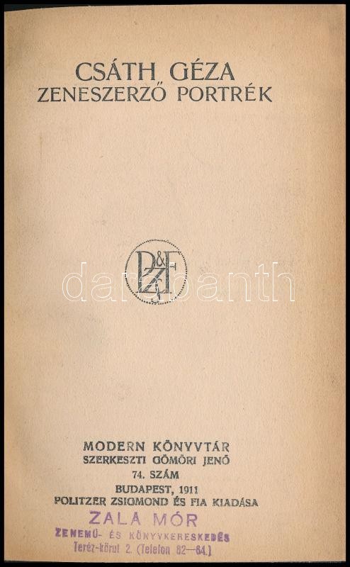 Csáth Géza zeneszerző portrék. Modern Könyvtár. 74. szám. Bp.,1911, Po... https://www.darabanth.com/hu/326-Gyorsarveres/326.0/Konyvek/Konyvek-Egyeb-ritkasagok~1500020/Csath-Geza-zeneszerzo-portrek-Modern-Konyvtar-74-szam-Bp-1911-Politzer-Zsigmond-es-fia~II1817784