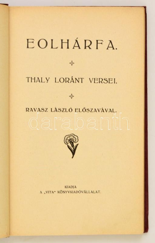 Kiadja a " VIT... https://www.darabanth.com/hu/326-Gyorsarveres/326.0/Konyvek/Konyvek-Egyeb-ritkasagok~1500020/Thaly-Lorant-Eolharfa-Ravasz-Laszlo-eloszavaval-Kiadja-a-VITA-Konyvkiadovallalat-pap~II1802655
