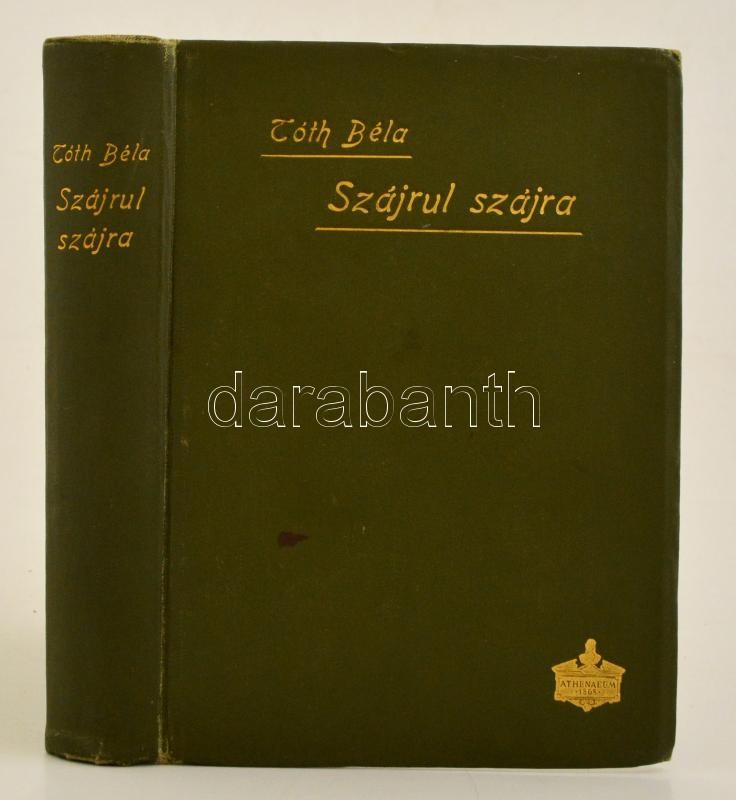 Tóth Béla: Szájrul szájra. Budapest,(1895), Athenaeum, XVI+446+1 p. El... https://www.darabanth.com/hu/326-Gyorsarveres/326.0/Konyvek/Konyvek-Egyeb-ritkasagok~1500020/Toth-Bela-Szajrul-szajra-Budapest-1895-Athenaeum-XVIplus446plus1-p-Elso-kiadas-Aranyozott-eg~II1785104