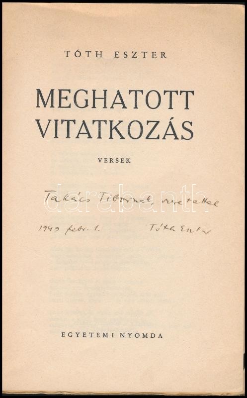 (Bp. 1948.) Egyetemi ny. 47 p. Első megjelent kötete. (Édesapja Tóth Árpád volt.) Dedikált példány. Kiadói papírborítóban.